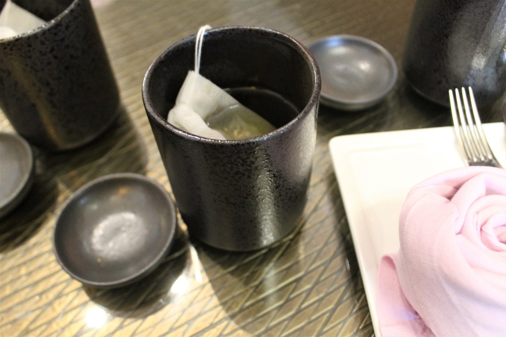 So, we did not expect a full ceremony!? It was so cool! It didn’t involve any beliefs or anything spiritistic like that, more of a beautiful and relaxed process. I’m sure I’ll be posting videos of it on our Instagram… (Follow us! @parTEAwithmeBlog) But, after she brought each of our tea blends, she then started to prepare each of our cups. Let’s talk about those cups for a minute… They were more like mugs. Asian mugs. So we missed the cutesie vintage floral teacups + saucers. Okay, so… She packs each of our drawstring tea bags with each of our blends. (Again, having to silence the OCD) She had to do 8 for our table, mmkay guys, EIGHT!! Ugh, sweet girl. And she was so patient cuz each of us wanted to take pics + videos of EACH (ay-yay-yay) filled bag! Haha. And she would even turn what she was doing toward the camera, just love her. THENN, she would pour our cups mugs about halfway with hot water coming out of the tiniest, daintiest spout of their teapots. The poor girl’s back!! Again, eight times. We were so enthralled with every move she made, NO ONE was drinking their teas yet! Hahaha. We patiently waited for each of our girls’ 2 cups to be filled, before trying. By the time I took my first sip, my tea was just warm yall. Haha.