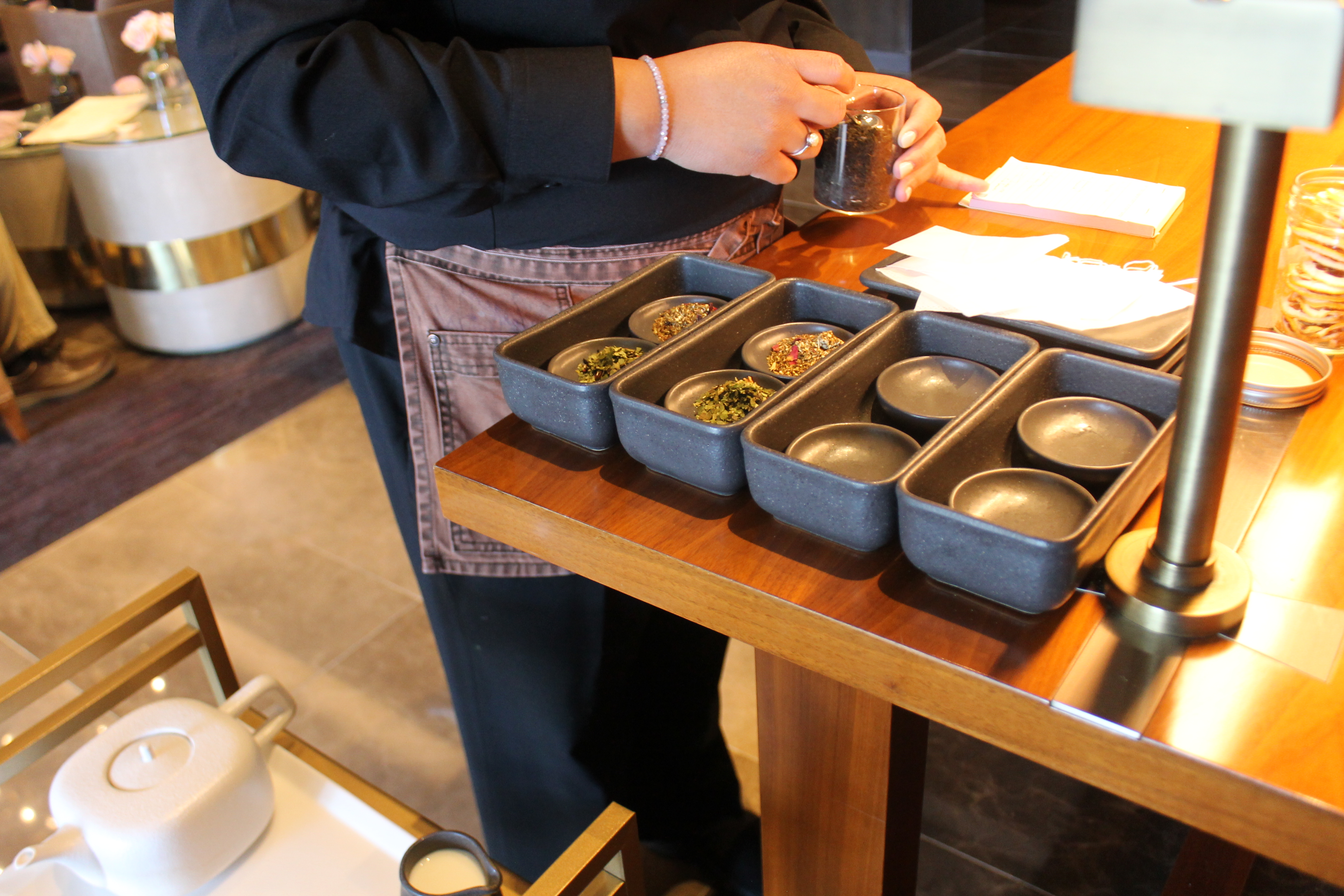So after she took our tea orders, she stepped away and a minute later I saw her at the tea bar. (huge eyes emoji) She was creating our teas FROM that tea bar! (two huge eyes emojis) She was preparing what we were going to CONSUME from all those containers that we just exhaled in. (Hahah, I can’t with my word choices sometimes!) I tried my best not to care, and instead asked if I could take pictures of what she was doing! I told you, I was committed yall. (you’re welcome, haha)