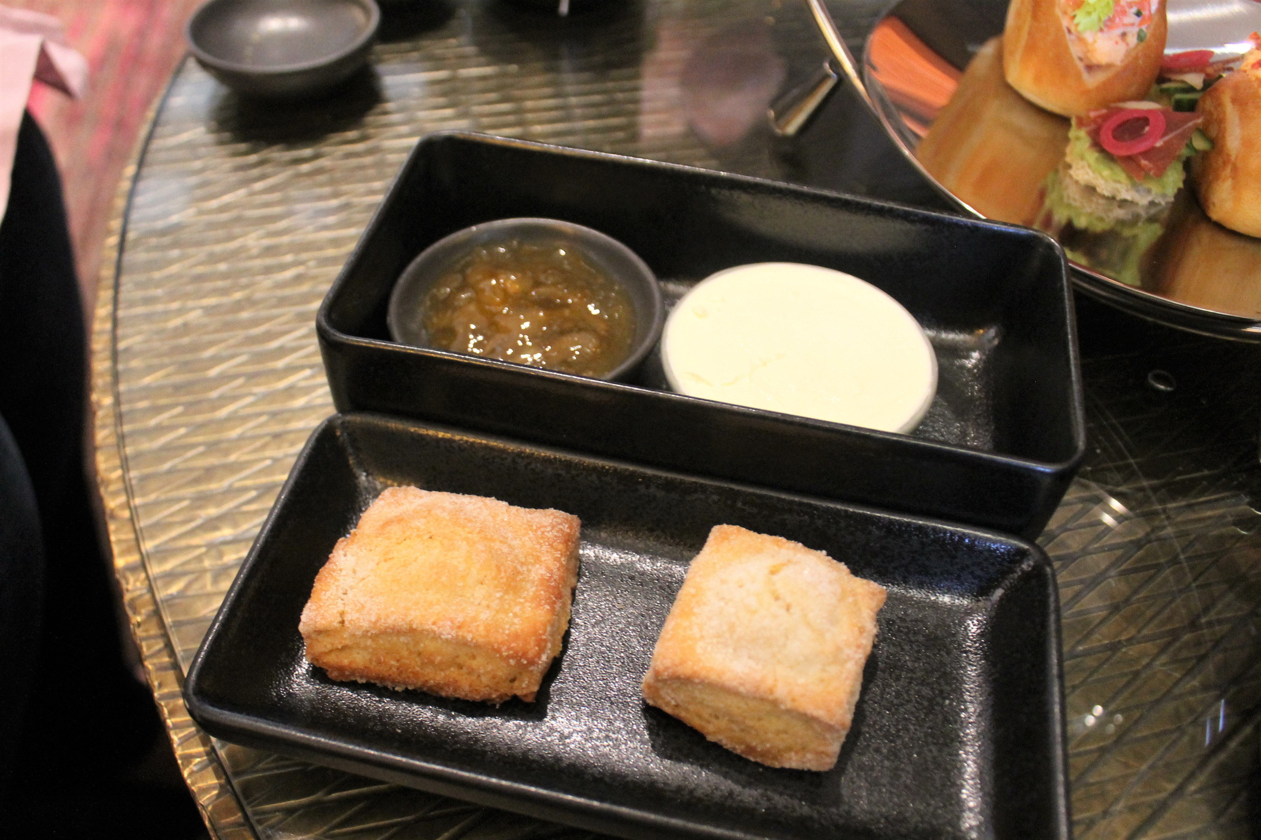 It was a plain scone, nice crunchy outsides with fluffy insides. Could have used some salt. The yuzu jam was new. I’m used to the strawberry or raspberry that’s usually put out. But this one had a good bite to it, the pieces of rind. Reminded me of marmalade. And their devonshire cream was real smooth. Everything together made complete bites of goodness.