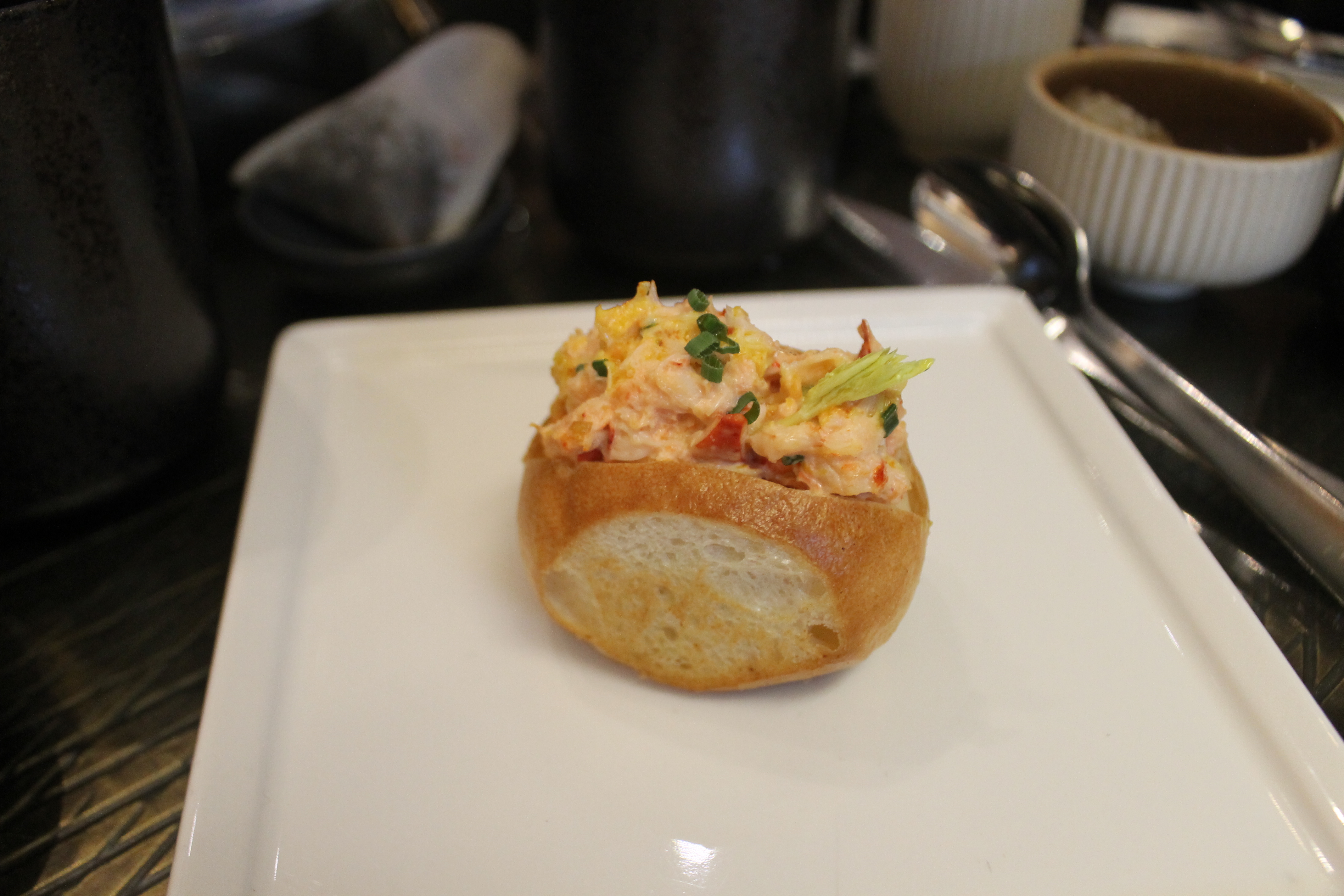 Mini Lobster Roll (micro celery, fennel tops, turmeric oil) – I was hearing all about this lobster roll at the table before I got to it. Even our girl next to us loved that one. Lobster was steamed to perfection, nice chewy bites. A little too much onion flavor for me. Bread had a nice bounce to it. Another piece that wasn’t cute to eat tho, hehe.