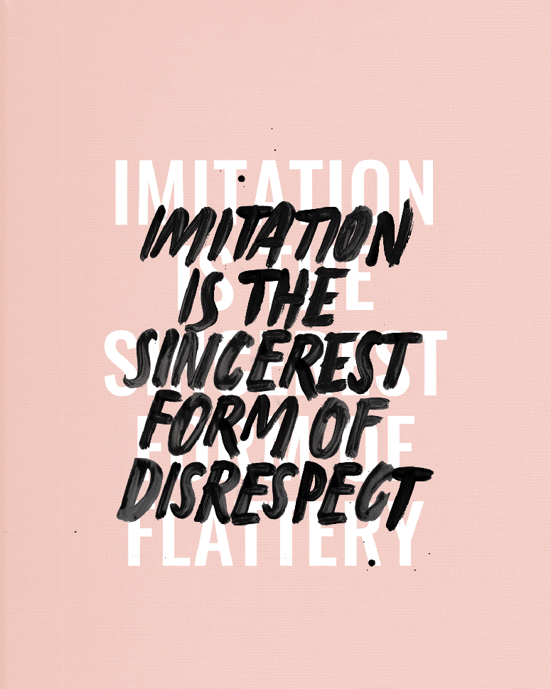 Have you ever heard of the term being “Single White Female’d”? I don’t like the term, I didn’t make it up, and I don’t think I ever even watched the movie. But if you Google it, it will say this (and I am quoting from Google here): “an obsessive, malevolent, and manipulative female friend.” More simply explained, it is also used as a verb or description of someone who obsesses over you and copies you. Now, I’m sure you’ve seen the initial above quotes. How someone copying you is supposed to make you feel honored. In my imperfect opinion, I think it shows a lack of integrity and originality. At the very least, give credit where it’s due.