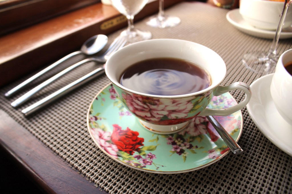 The tea comes on a little cart, like they do in airplanes! We had 4 choices: Yunnan Black, Earl Grey, Chamomile, and Rooibos. And they came around with their cart quite a few times during our trip to refresh our cups and try new flavors. I tried all but their cham (didn’t wanna get sleepy). They weren’t bad teas. I think they kept the bags in those thermoses cuz they were heavily steeped. But I wasn’t complaining cuz I like a dark brew anyhow.