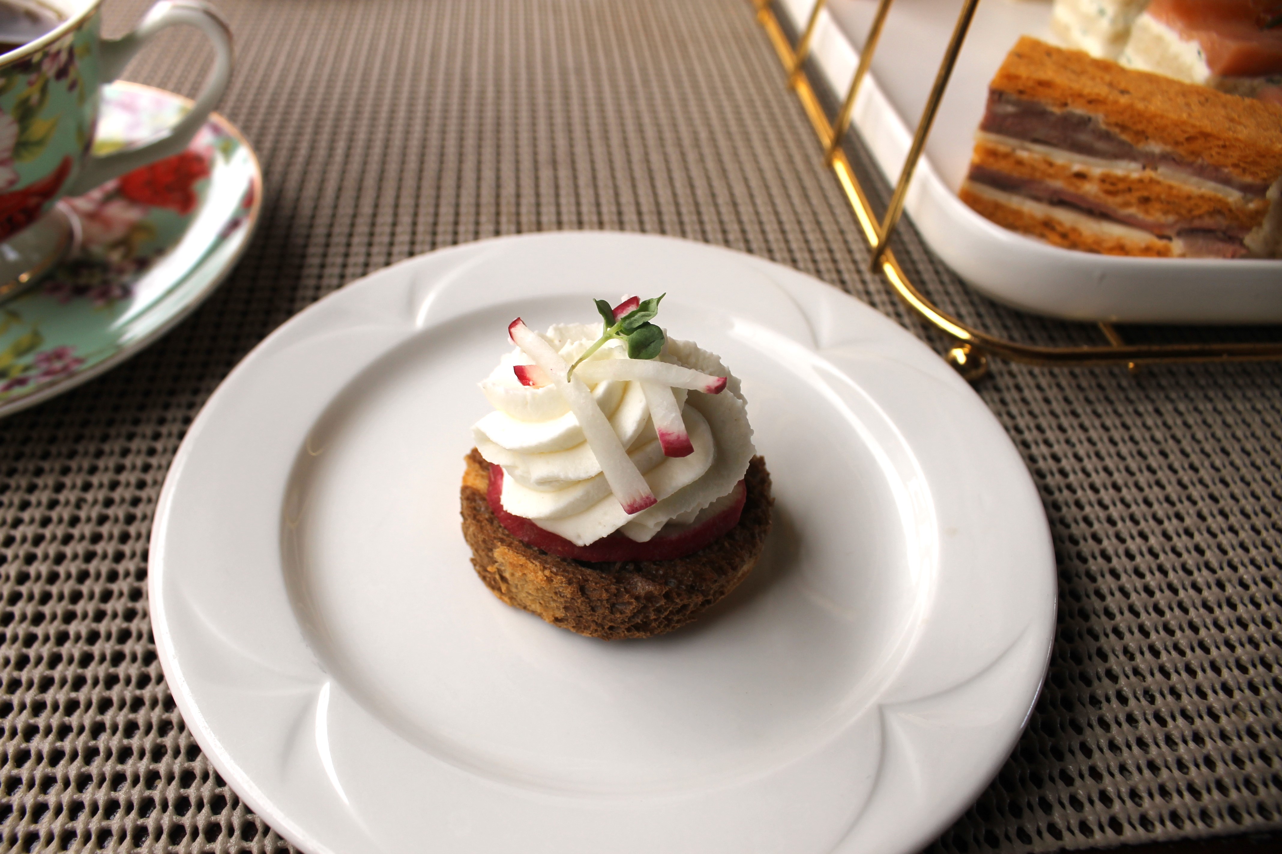I didn’t have time to think about a strategy on how to eat my savories (I usually go cucumber first) cuz I was just so in the moment (and a bit distracted), so I went from the top down. And it went well!