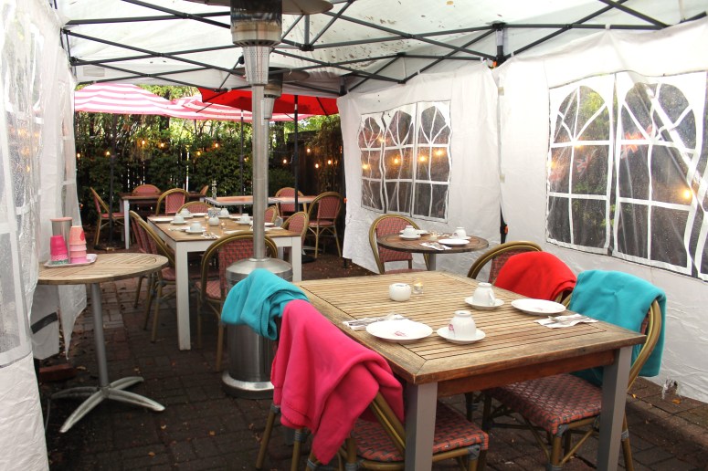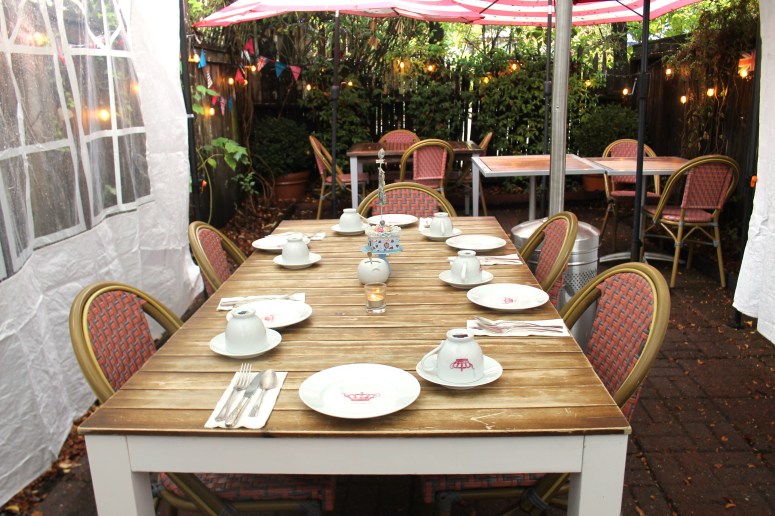 When she walked us to the back to our table and it was OUTSIDE- (the ‘I can’t handle this’ emoji) let’s all say it together: “I love eating outside!!!” Since I don’t look at social media or websites too much before visits, I either didn’t know or had forgotten that they had an outdoor option. Even their tents were so cute with window details! They helped us feel so comfy back there. We had cozy blankets, heaters on (that later we even turned off), and even (guys) purse holders were offered! This elevated the experience for me already.