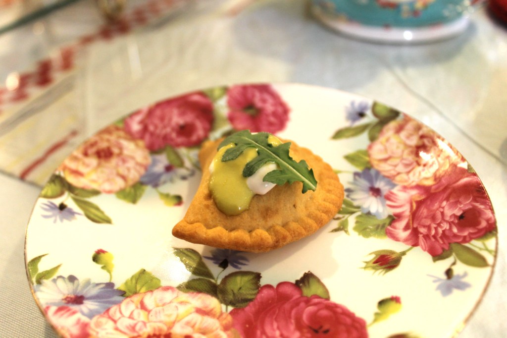 Savory Tea Hors D’oeuvre (Black Bean Empanada) – The girls loved this one! The pastry was well done, the beans were not dry, and the toppings complimented it stunningly.