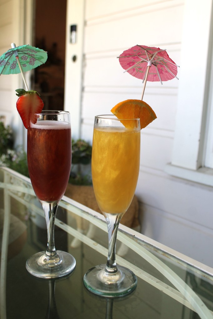 Butterfly Bellini Prosecco Cocktail (Peach Juice with Bubbly Prosecco) – Simply explained and simply delicious. The dancing glitters were a nice touch!