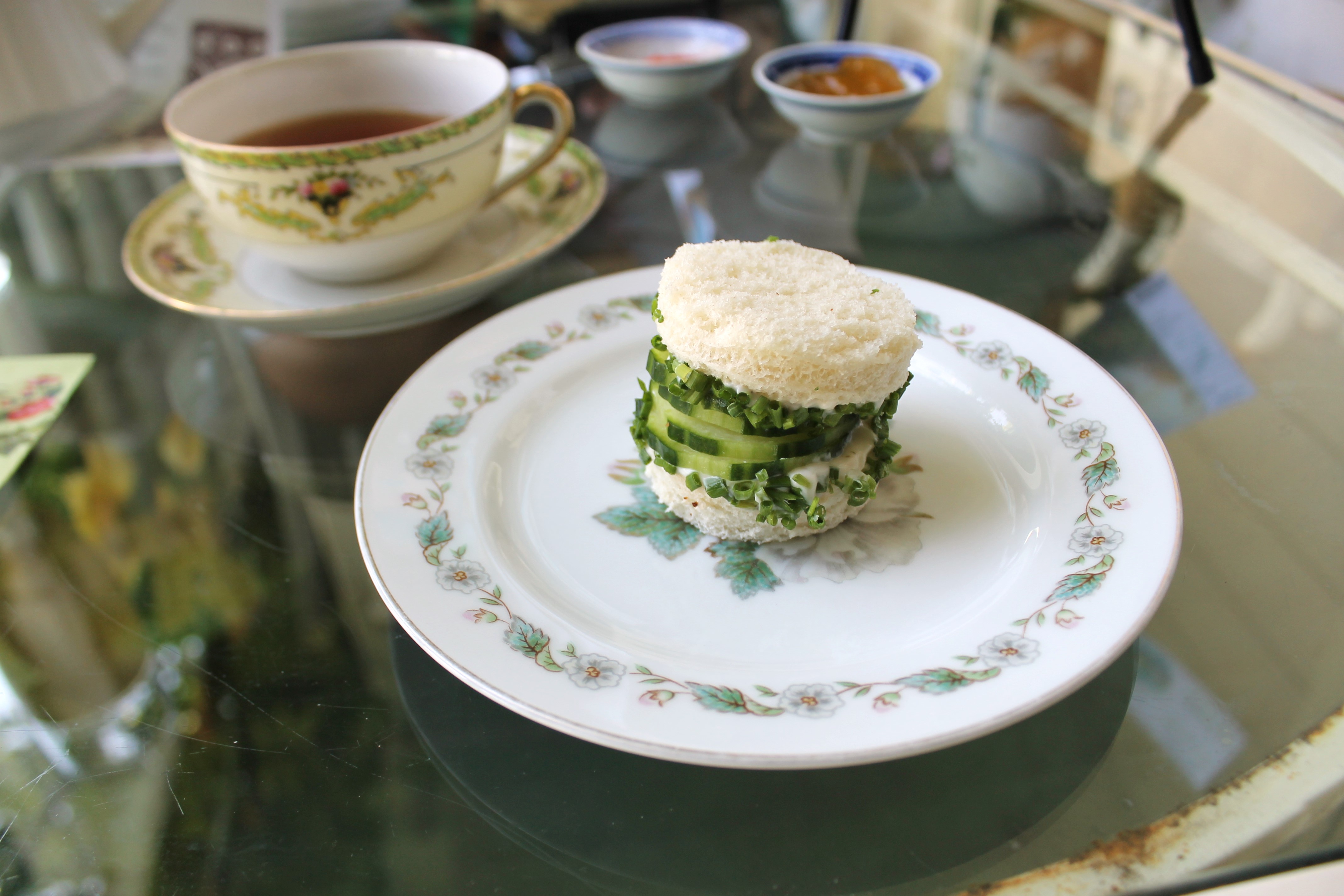Kukama (cucumber) Tea Sandwich with Chives – My favorite is that they do all the chives and use a whole STACK of cucumbers!