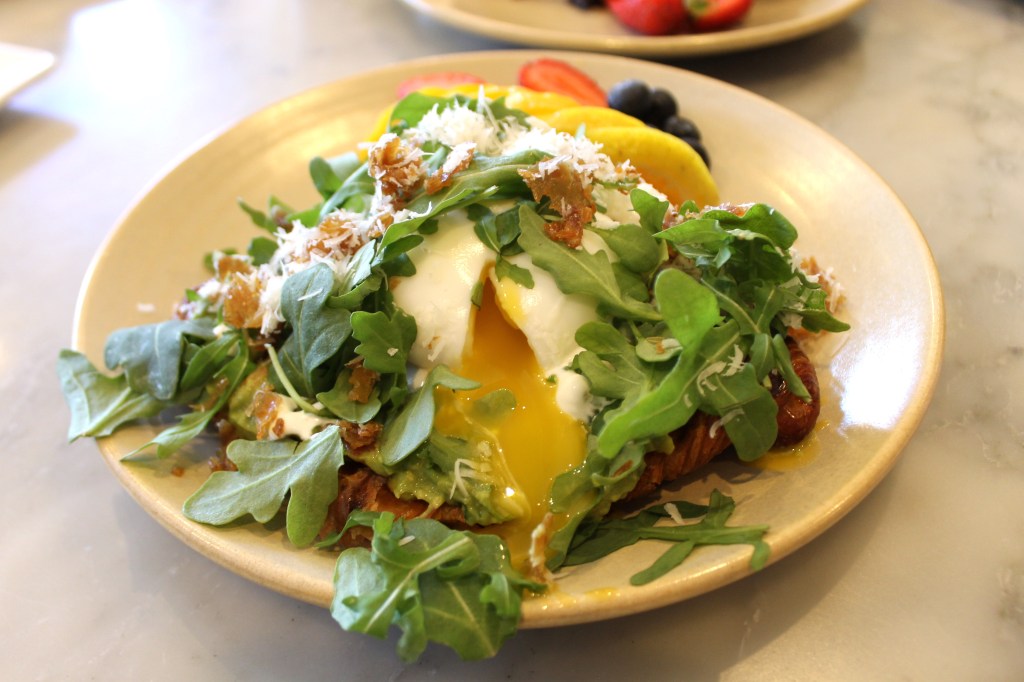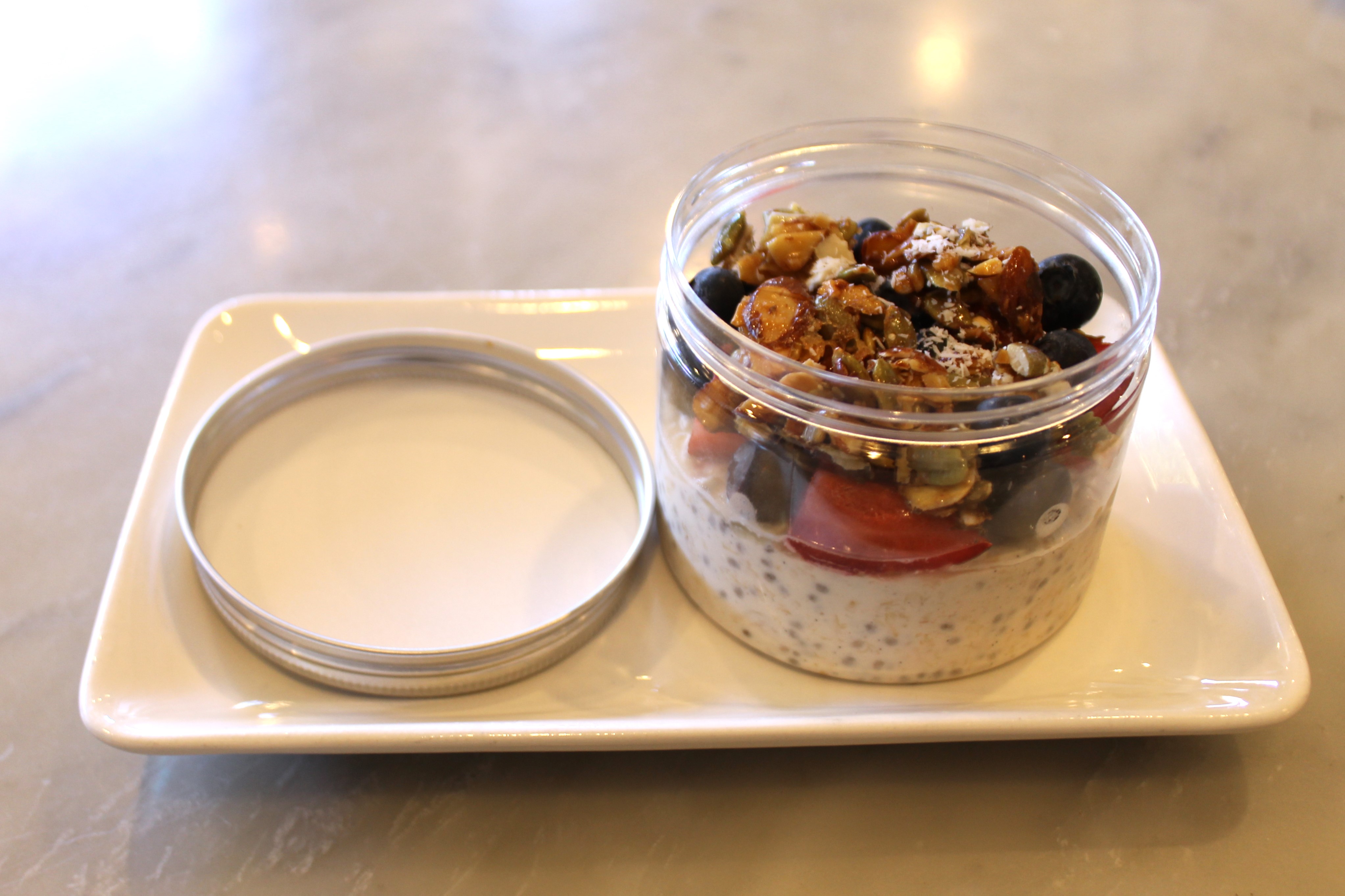Coconut Overnight Oats (chia seeds, seasonal fruit, honey glazed nuts, coconut milk, maple syrup) – Creamy like a panna cotta (raise your hand if you know that’s my favorite dessert), nice crunch from all the nuts, honey hanging out in the background, and perfectly-timed ripe sweet berries. Spoon, licked clean.