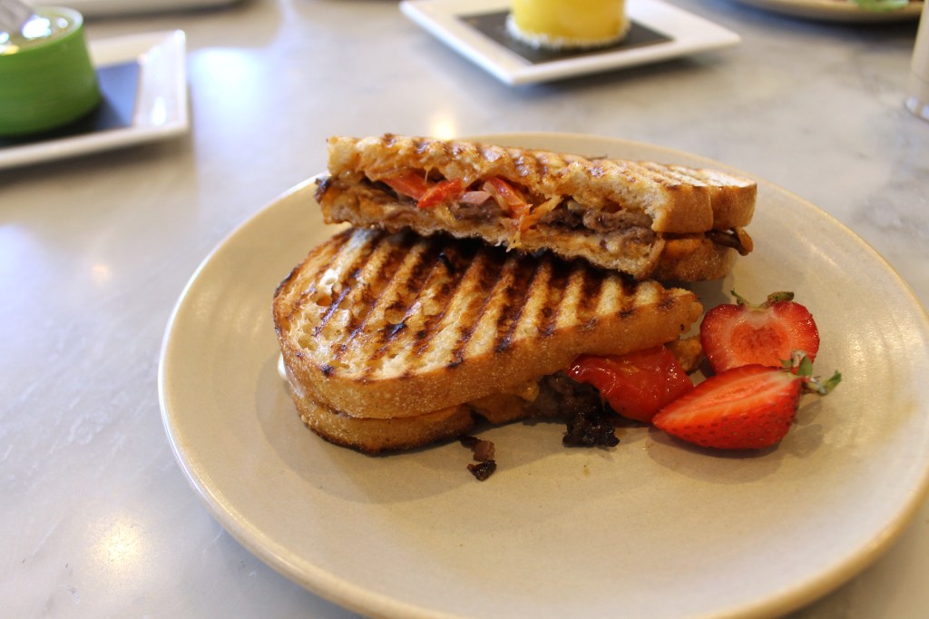 Roasted Beef Panini (roasted prime beef, sweet onion, grilled pepper with onion olive oil, secret sauce) – Let me start off by saying: I didn’t even want this one. Hahah! (I was looking at their chicken one with more arugula and garlic aioli) But I am soo grateful that I agreed to what my date chose, because this was my absolute favorite of the brunch!! The tanginess of that sauce!! Onion was grilled to perfection, the juiciest red pepper, and the bite to the beef was excellent. I’m gonna have to ask the Huz to pick me up one of these when he’s on that side of town again, cuz…ugh, SO GOOD.