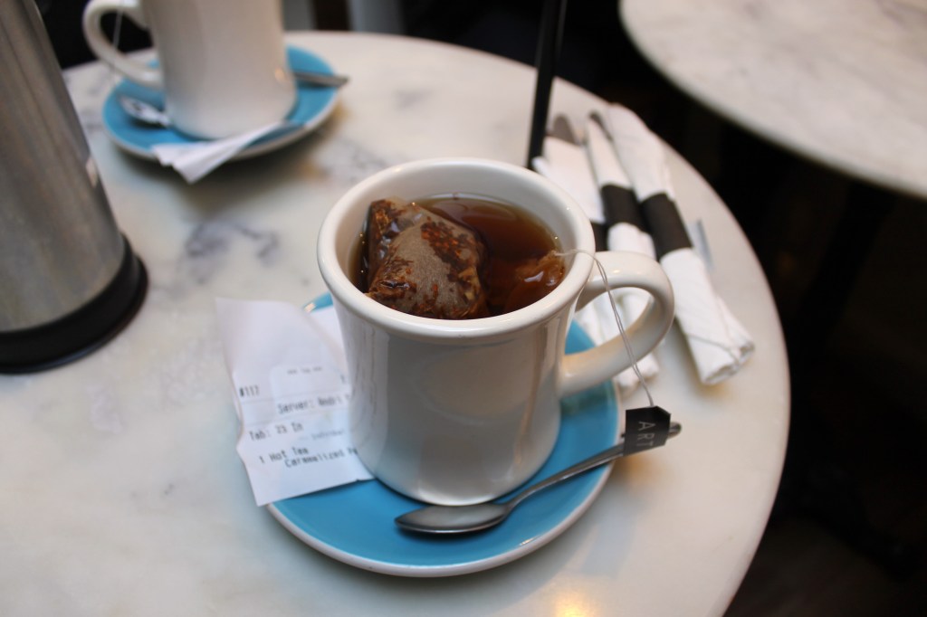 My only cup of tea was already waiting for me while I spent those 45-minutes at the register ordering. The bag was overfilled and it was steeped too long. I chose a Caramelized Pear Tea. There’s a sign up and it’s plastered on their menu that says they proudly serve Art of Tea teas. I know Art of Tea (they serve that at the Four Seasons), and this was not a good representation of how good that brand is.