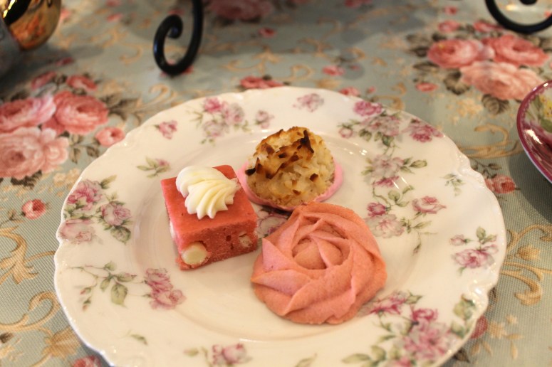 I could tell from the gift shop and from the names of the teas offered on their menu, that it was mostly (if not all) teas from Harney & Sons. That was okay with me, cuz at least I like that store brand. My girls and Huz got the Bangkok (coconut, ginger, vanilla), Salted Caramel (which we actually have at home…I boil before guests come over for a natural air freshener), and Thai Rooibos (one of my favorite blends from Harney). I ordered their tea of the month which was Cupid’s Cherry Chocolate. Both notes were present, but it was sweetened…and I didn’t like that.