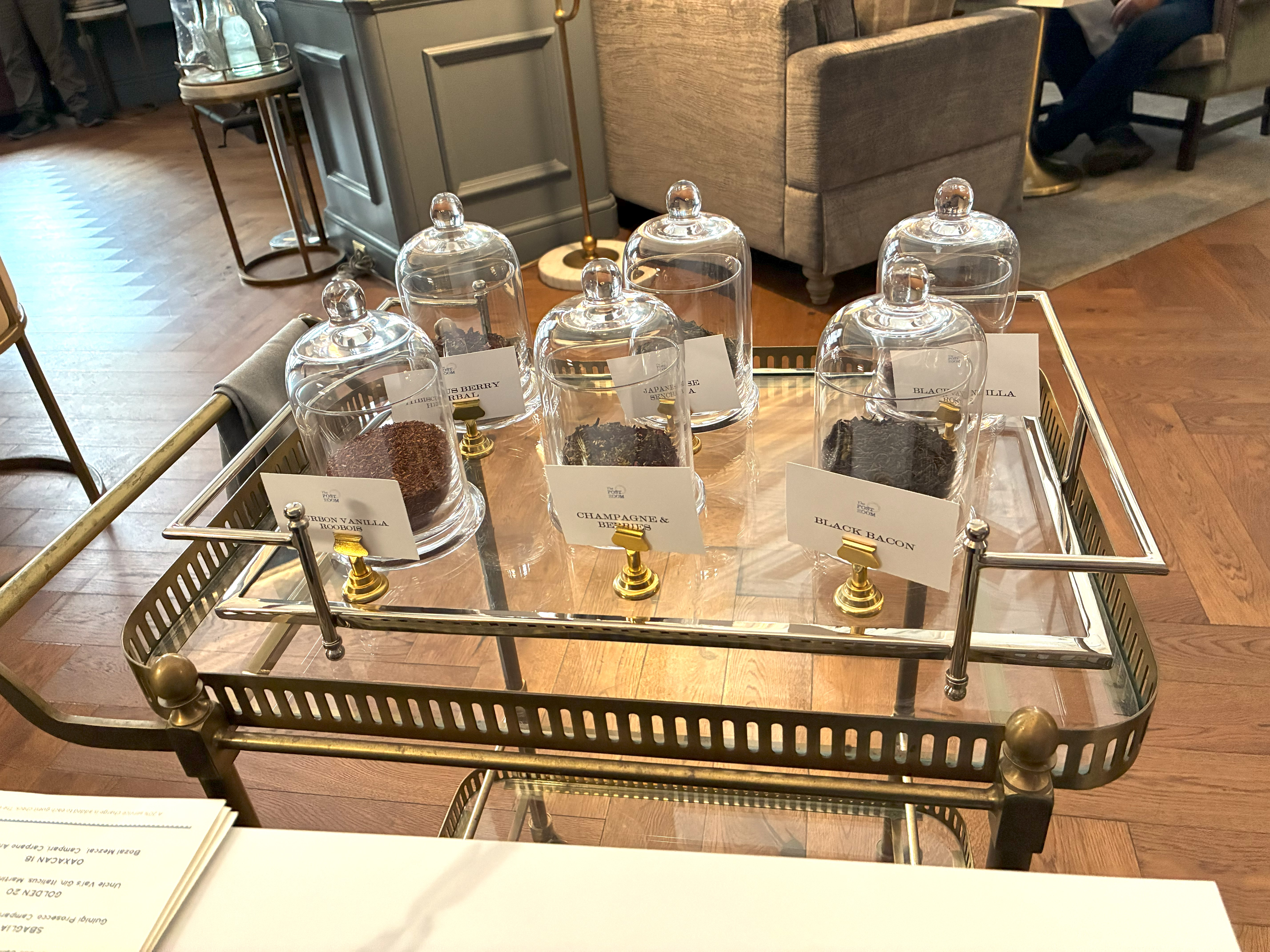 Upon seating, they bring over a cart of their offered teas. Brilliant display and set up. I especially loved how she brought the samples to you, so not everyone is touching everything and breathing all over everything. An OCDer’s dream!