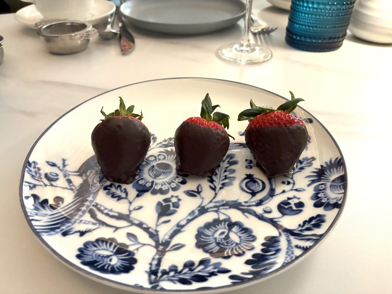 So once we were settled with our teas and choice of Brut or Rosé Proseccos, they brought us WELCOME Chocolate Covered Strawberries!!?! I loved that!! Nice touch Beacon, well done.
