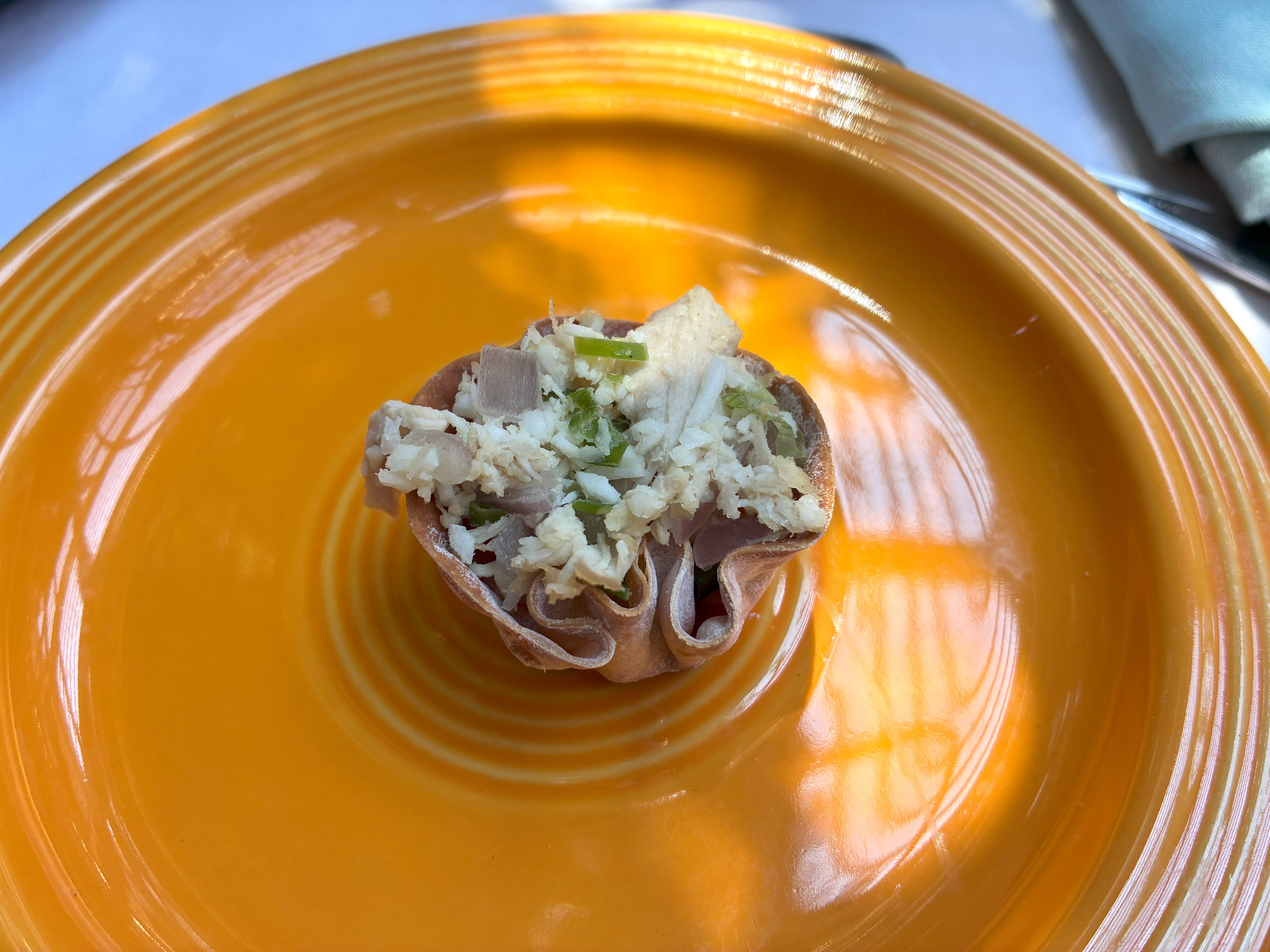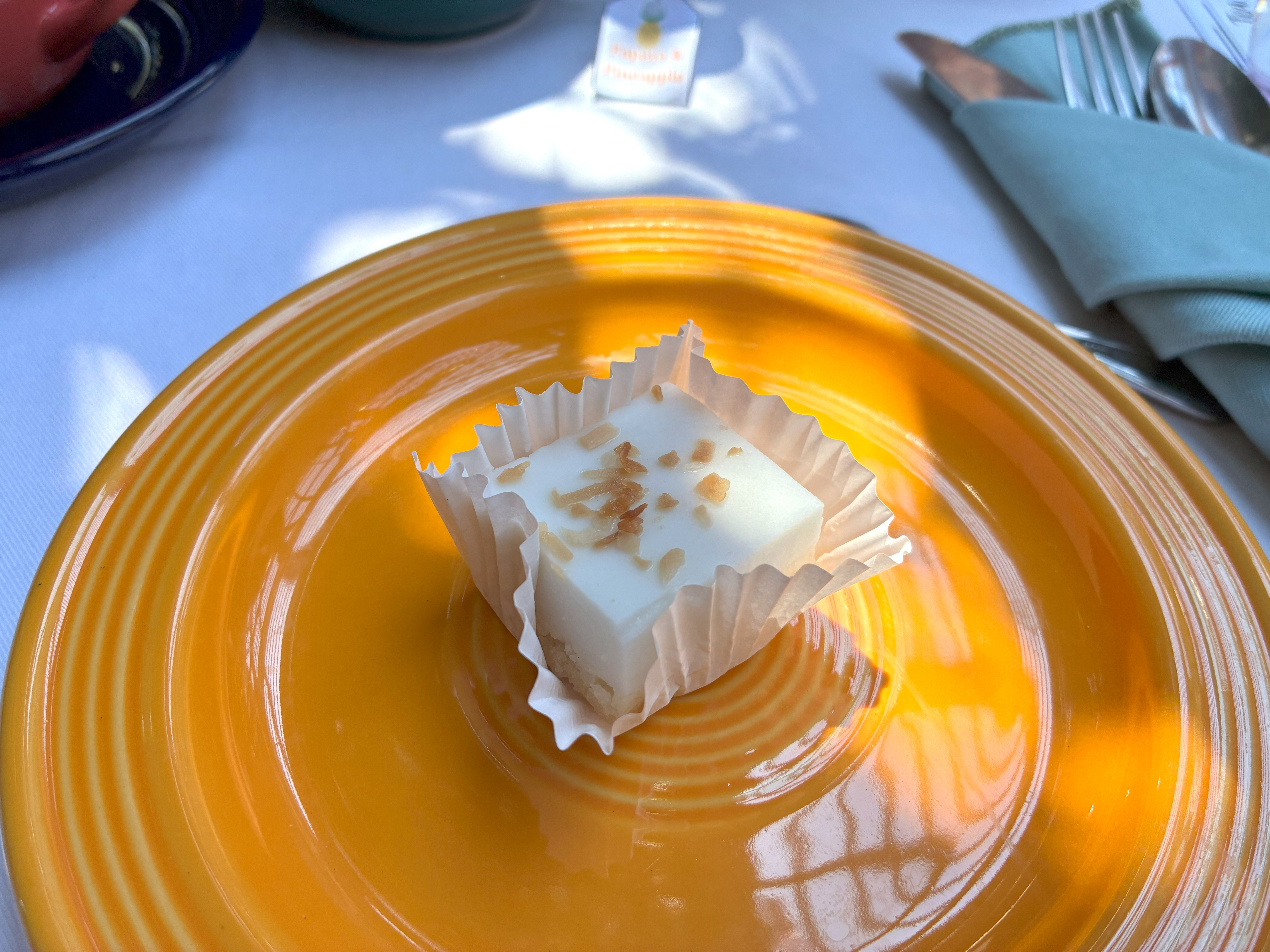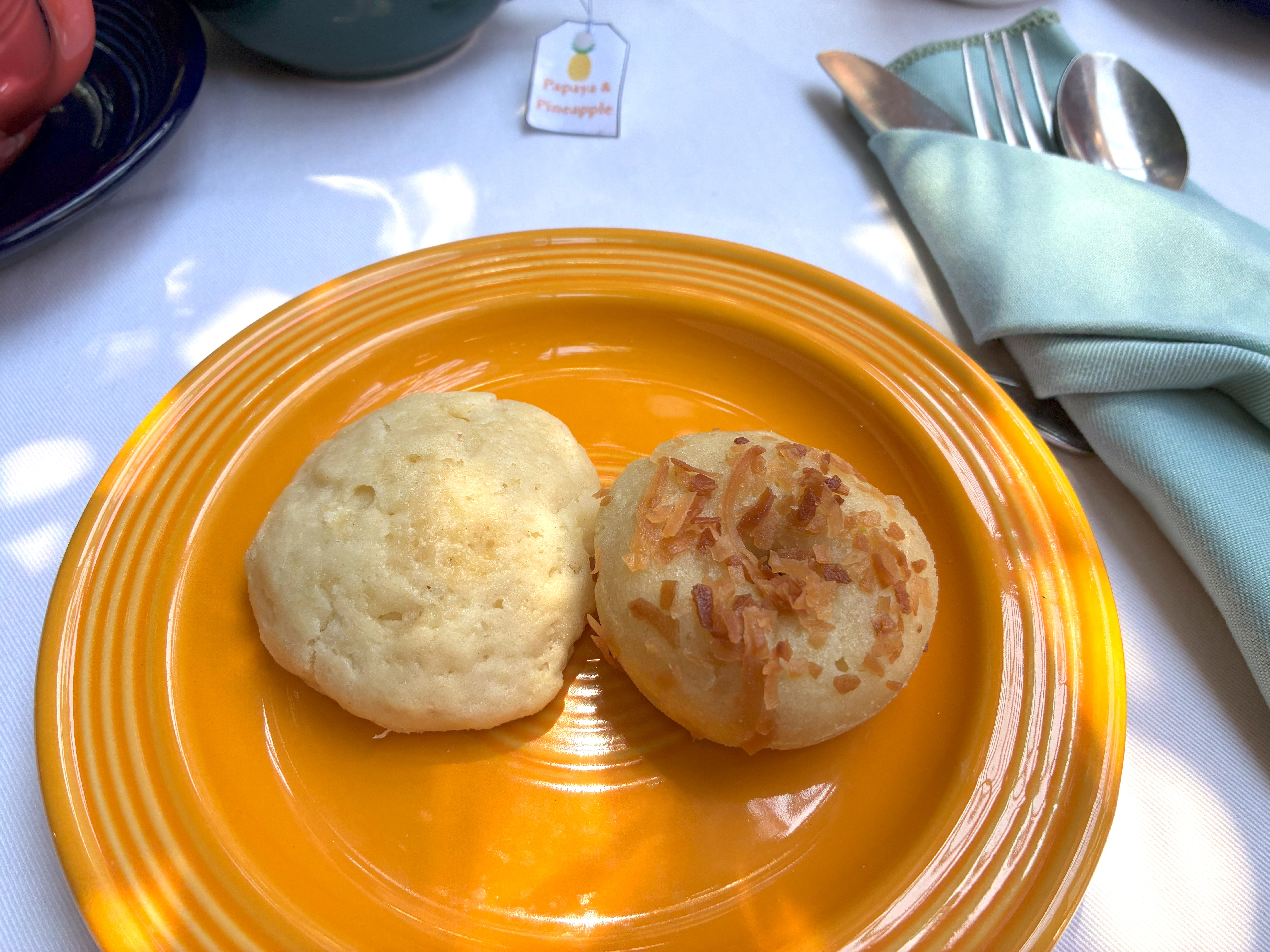 Chamorro Chicken Salad – When I heard the word “Guam” come out of his presentation of their service, I kinda did a double take. Couldn’t be, nope, they couldn’t’ve… They made Kelaguen yall, KEL-A-GUEN!!! Listen, I don’t think I’ve ever shared on the blog about this. But my bio parents GREW UP in Guam and my DNA says I’m part Guamanian. As a matter of fact, me + the girls spoke about this very detail on the ride there! So I’ve had my fair share of Kelaguen. Whether or not this is what Kiki’s was trying to accomplish…they executed it WELL. And don’t even get me started on that crispy pastry they chose to serve it in. SLAMMIN, yall. Just slammin. Favorite of the tea service.