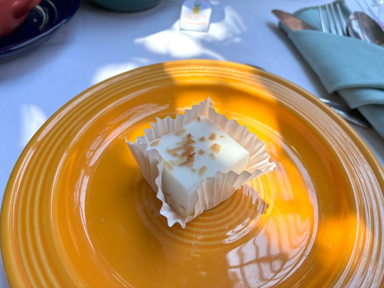 Papaya & Pineapple (China green tea, papaya, pineapple, strawberry) – I chose well! This was so fragrant and also transferred in flavor. They come around to refill with hot water, and I thought they had a nice collection of choices that fit this theme well.