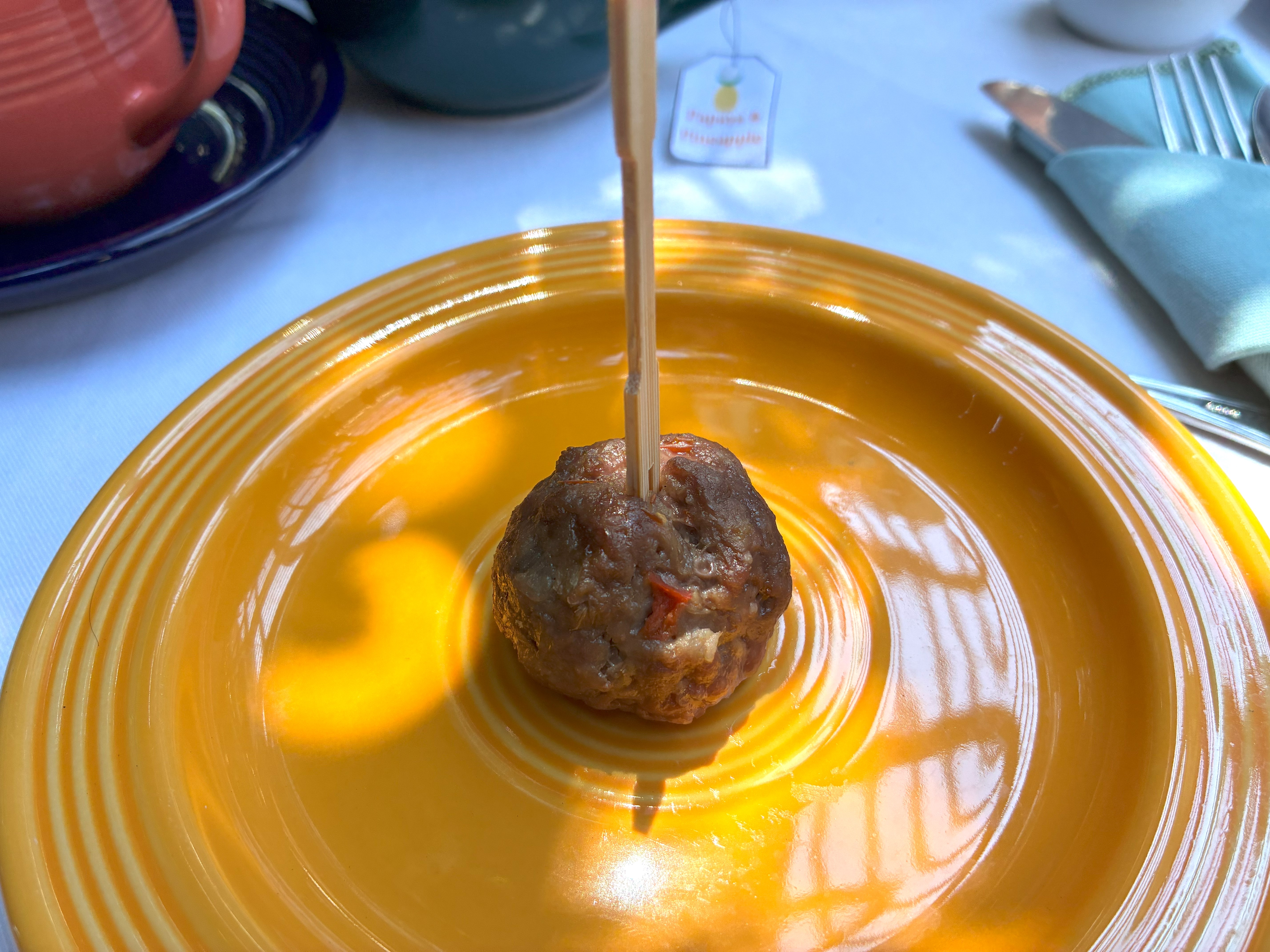 Glazed Polynesian Meatball – That is a substantial meatball! I had mine with the hot mustard, loved it.