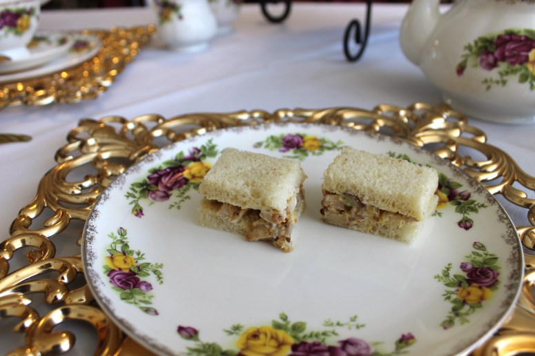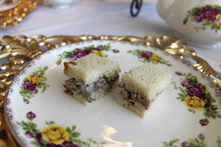 There are two levels of tea service: one for 1.5 hours that comes with salad or soup and one for 1 hour without. We did the 1 hour one. Each tea service comes with only ONE tea sandwich choice, that are cut in 4. She chose hers, I chose mine, and we ordered a 3rd additional tea sandwich à la carte. Peep the sizes…