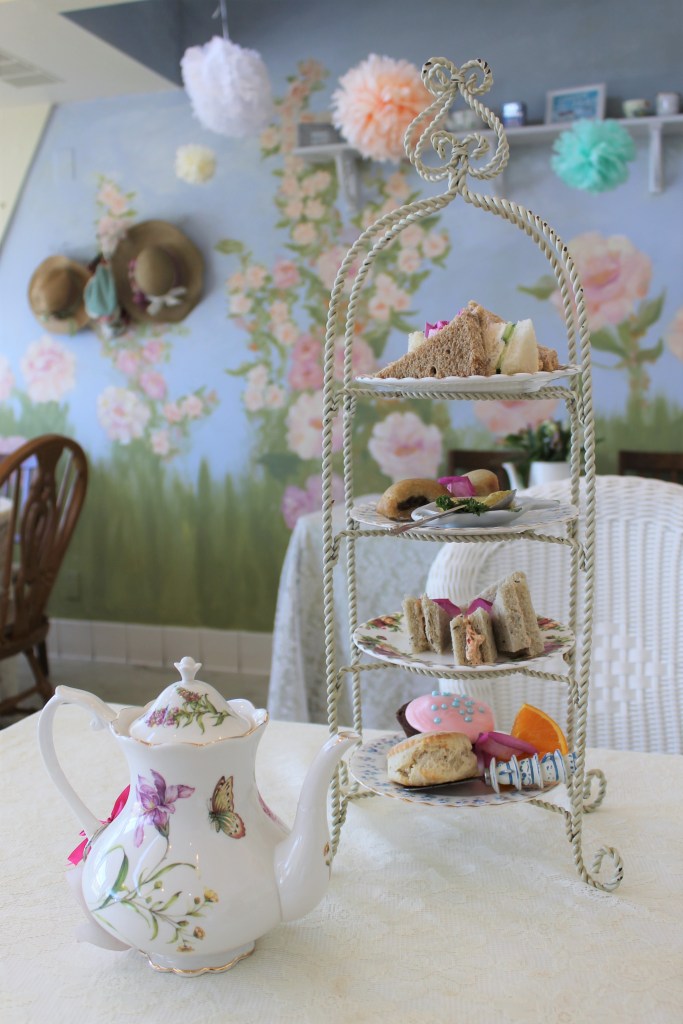 28. Lovey’s Tea Shoppe, Pacifica – Black Vanilla with Lavender tea, asparagus sandwich, and sweet staff.