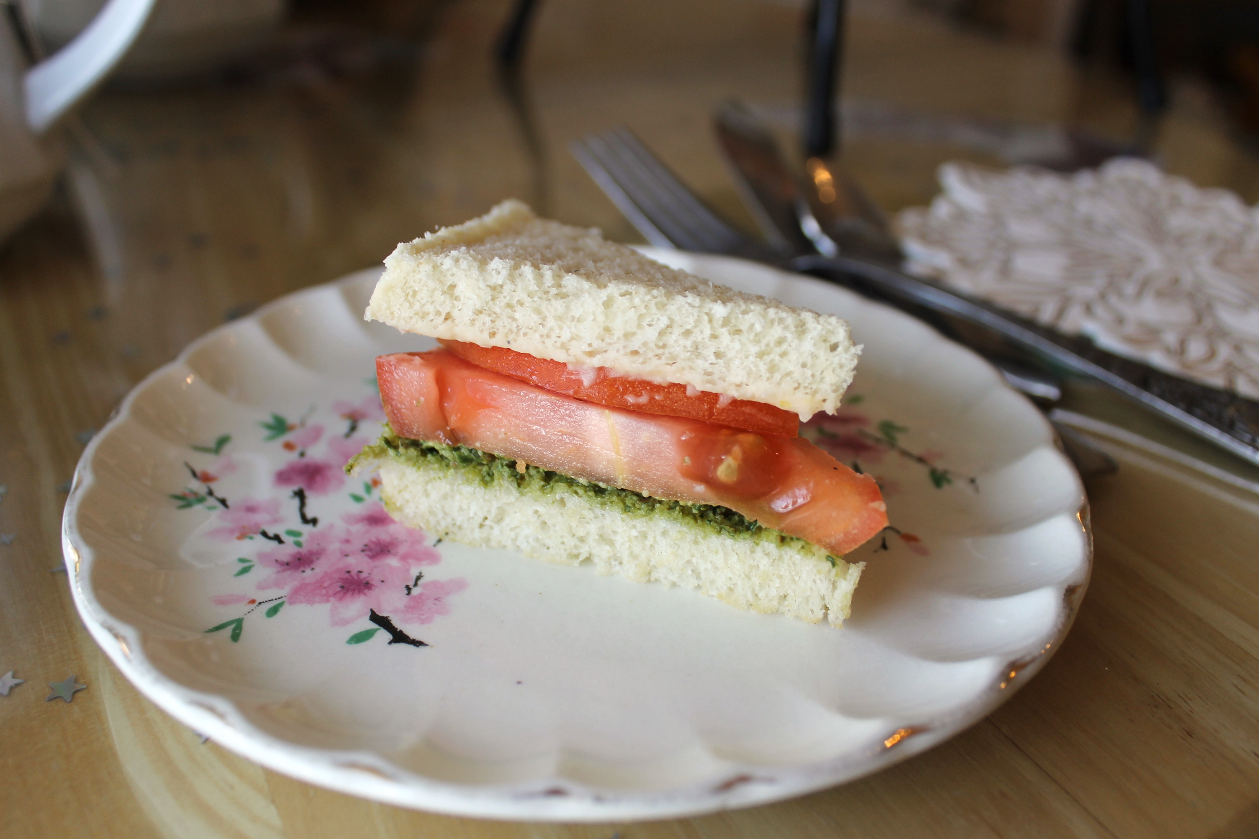 Santa Maddalena Pesto, Fagiloi Bianchi & vine ripe tomato Finger Sandwich – Okay, that tasted like Nonna just made it for your afterschool snack! The basil came through nicely and those were the juiciest tomatoes of all the tomatoes.